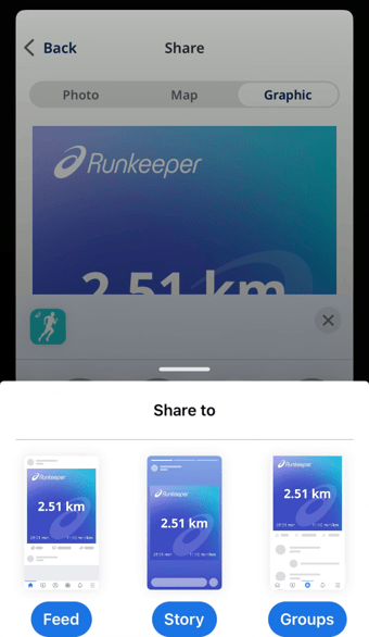 When you click on the share icon, you will have the option to share your activity in three different styles: