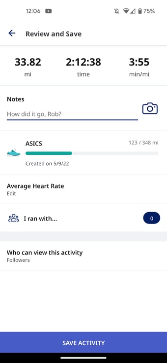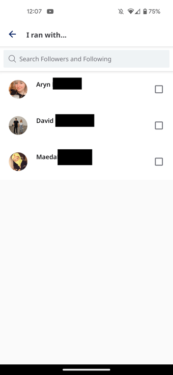 To tag a follower in an activity you completed, go to the your activity list on your Me Tab. Then, select the activity you want to tag someone in. Once you've selected the activity, go to the Summary screen in iPhone, or the Review and Save screen on Android. From here, you can select the option "I ran with..." and then browse your Contacts and Followers. After selecting those whom you completed the activity with, press the Back button in the upper left-hand corner, and that person will be added! (On Android you will need to tap Save after hitting the back button)