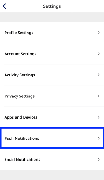 - Go to the Settings icon on your 'Me' tab to the right of your profile picture, select Push Notifications. From here you can change your settings to receive workout reminders.