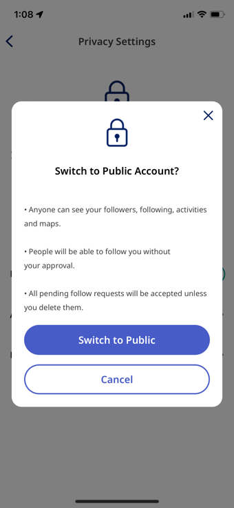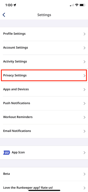 With this latest update, we have changed the privacy setting options available on your Runkeeper account. You now have the choice to have a public account, private account or unlisted account. By default, your account will be set to private. To update the privacy settings for your account, select the settings gear and click on Privacy Settings.
