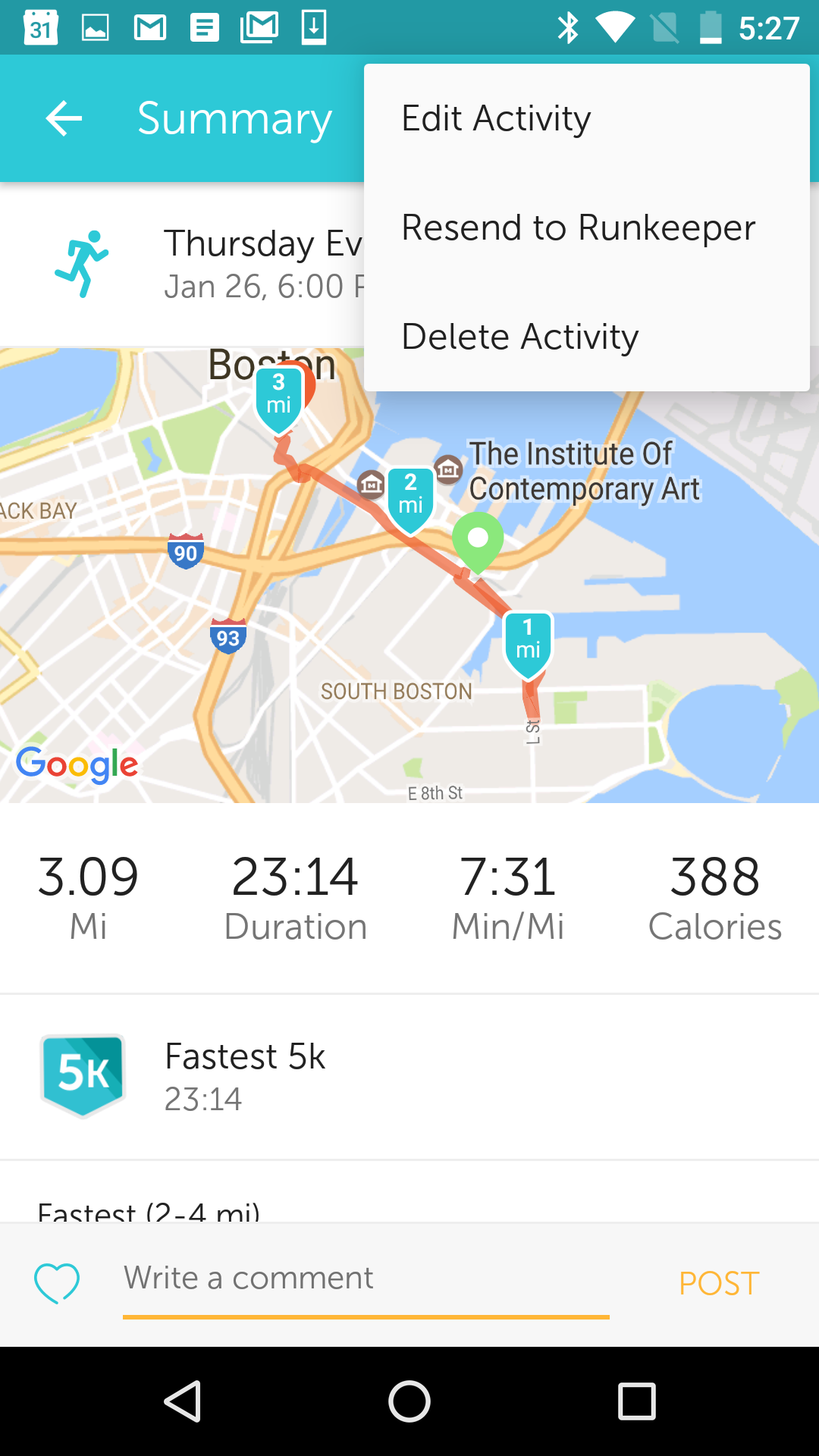 3. Als het totaal niet overeenkomt, scrol door je activiteitenlijst op je telefoon en vergelijk deze met de lijst op Runkeeper.com.