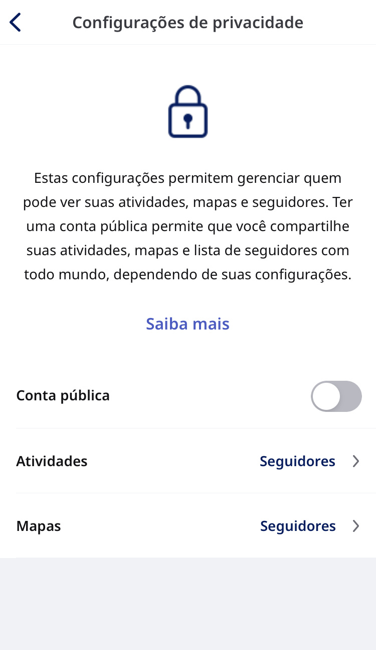 - A opção de definir que as atividades ou os mapas podem ser vistos por “todos” não está disponível porque não seguidores não podem ver os mapas ou as atividades de um usuário privado