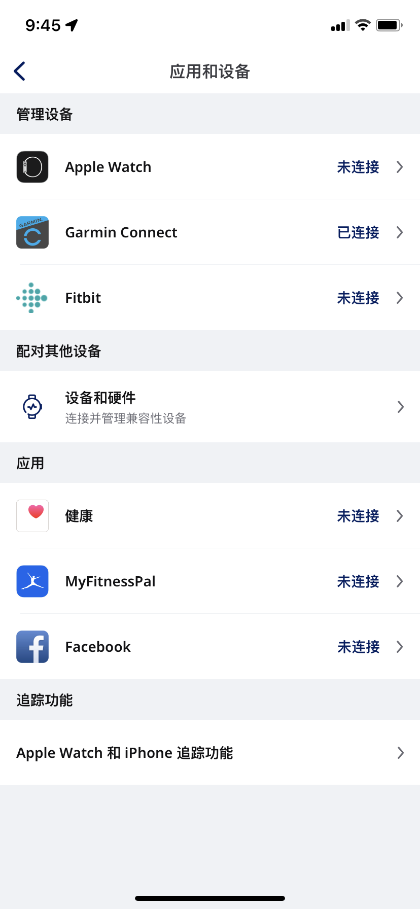 **如果你不知何故无法使用 Runkeeper 在 Apple Watch 应用上追踪运动状况。请进入 iPhone 的设置,从应用列表中选择 Runkeeper 应用。 用户可在此界面检查个人定位服务、通知及运动& 健身<2>设置状况。 </2>