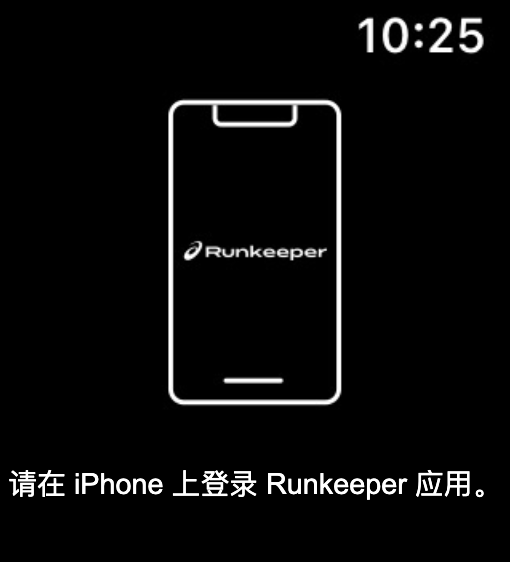 2. 在 Apple Watch 上打开 Runkeeper 应用,将出现提示界面,引导用户在 iPhone 上 登陆 Runkeeper 应用。