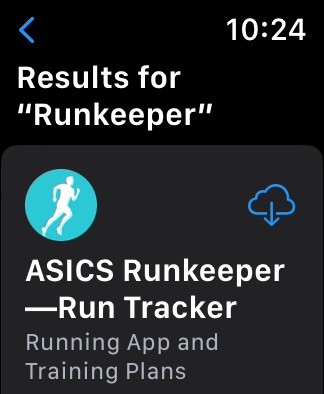 1. 在你的 Apple Watch 上下载 Runkeeper 应用。 请访问 Watch 上的应用商店,并搜索“Runkeeper”。